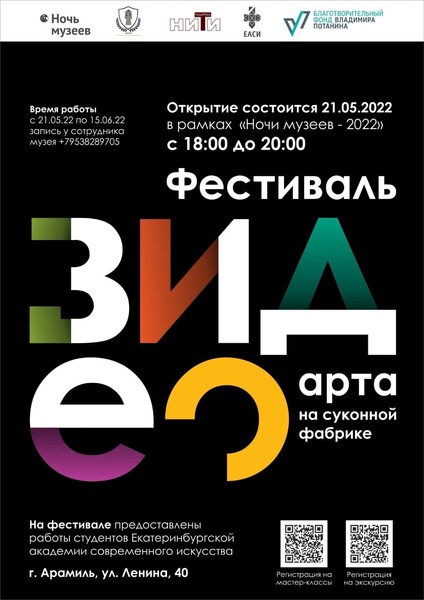 Главным партнером «Ночи музеев» стала Екатеринбургская академия современного искусства. Благодаря и.о. заведующего Кафедры актуальных культурных практик Ульяне Павловне Ефремовой, старшему преподавателю Кафедры прикладной информатики Наталье Юрьевне Сероштанниковой и студентам академии, посетители акции смогли увидеть Выставку «Незаметные герои 1941 – 1945 гг.», посвященную труженикам тыла, познакомиться с творчеством начинающих медийных художников на Фестивале видео-арта, показать фотофильм «Серая шинель» (увидеть можно на нашей странице Вконтакте).