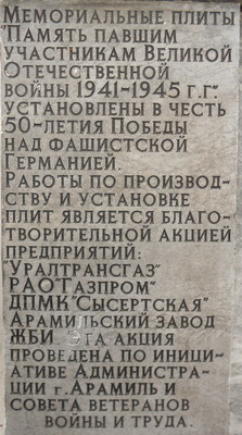 Арамильцы воевавшие в годы Великой Отечественной войны (памятники и обелиски)